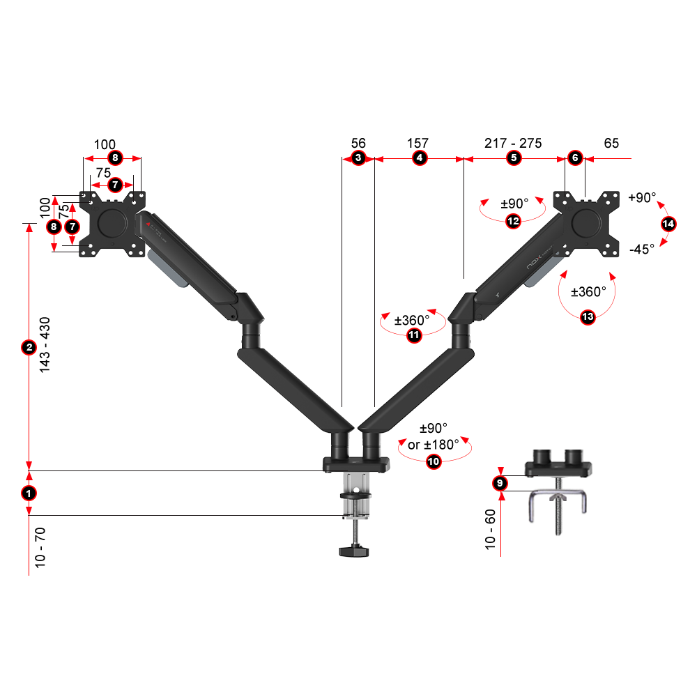 The NOX Monitor Arm offers ±90° swivel and tilt adjustability of +90° to -45° for both arms, making it easy to achieve your perfect viewing angle. Each arm operates independently, giving you total control across a wide range of motion. Perfect for multitaskers, creators, and professionals who demand precision in every move.