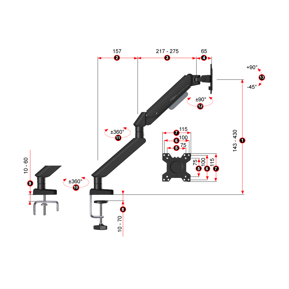Built for stability and performance, the NOX Monitor Arm supports 𝘂𝗽 𝘁𝗼 𝟯𝟮” 𝗳𝗹𝗮𝘁 𝗼𝗿 𝗰𝘂𝗿𝘃𝗲𝗱 screens with ease, holding up to 𝟵𝗸𝗴. It includes 3 VESA mount sizes (𝟳𝟱x𝟳𝟱𝗺𝗺, 𝟭𝟬𝟬x𝟭𝟬𝟬𝗺𝗺, 𝟭𝟭𝟱x𝟭𝟭𝟱𝗺𝗺) for secure and versatile setup.