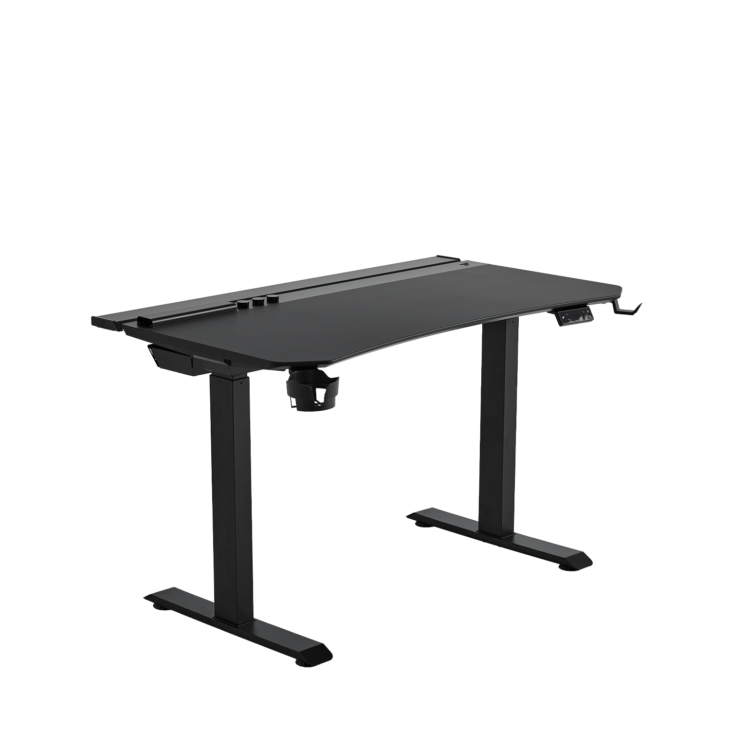 Dual-motor frame lifts smoothly and quietly, supporting heavy setups up to 120 kg.